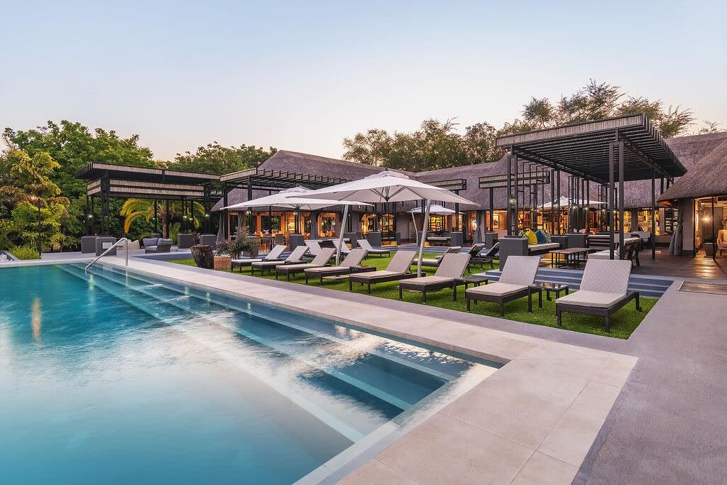 Luxuriöse Safari-Lodge am östlichen Tor des Etosha-Nationalparks mit stilvollen Zimmern und Gartenanlage, Pool und Spa zur Entspannung nach Safari-Erlebnissen.