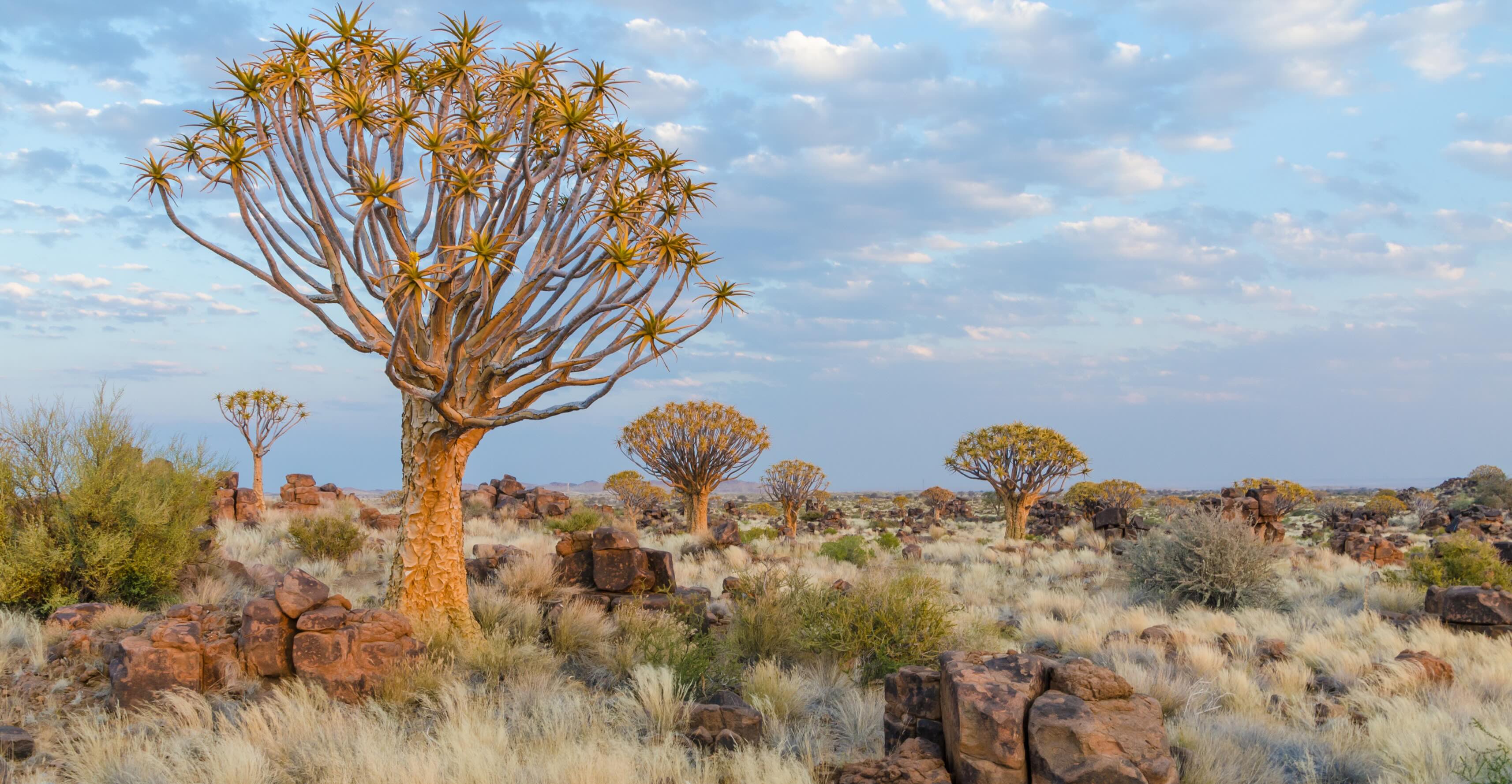 Auf dem Weg zum Fish River Canyon haben Sie die Gelegenheit, die sogenannten Quiver Trees (Köcherbäume) zu besichtigen. Diese bemerkenswerten Pflanzen sind typisch für den heißen und trockenen Süden Namibias. Bis zu neun Meter hoch, speichern sie Wasser in ihren dicken Stämmen – eine perfekte Anpassung an das Wüstenklima. Die ältesten Exemplare können über 300 Jahre alt werden. Ihren Namen verdanken sie den Buschmännern, die ihre Äste als Köcher für Pfeile verwendeten. Anschließend erreichen Sie eines der größten Naturwunder Afrikas: den gewaltigen Fish River Canyon. Mit einer Länge von 160 Kilometern, einer Breite von bis zu 27 Kilometern und einer Tiefe von bis zu 550 Metern ist er der größte Canyon Afrikas und der zweitgrößte weltweit. Die Gesteinsschichten im Canyon reichen bis zu 1,5 Milliarden Jahre zurück und bieten faszinierende Einblicke in die Erdgeschichte. Abendessen und Übernachtung in Ihrer Lodge in der Nähe des Canyons.